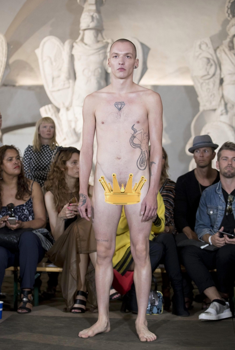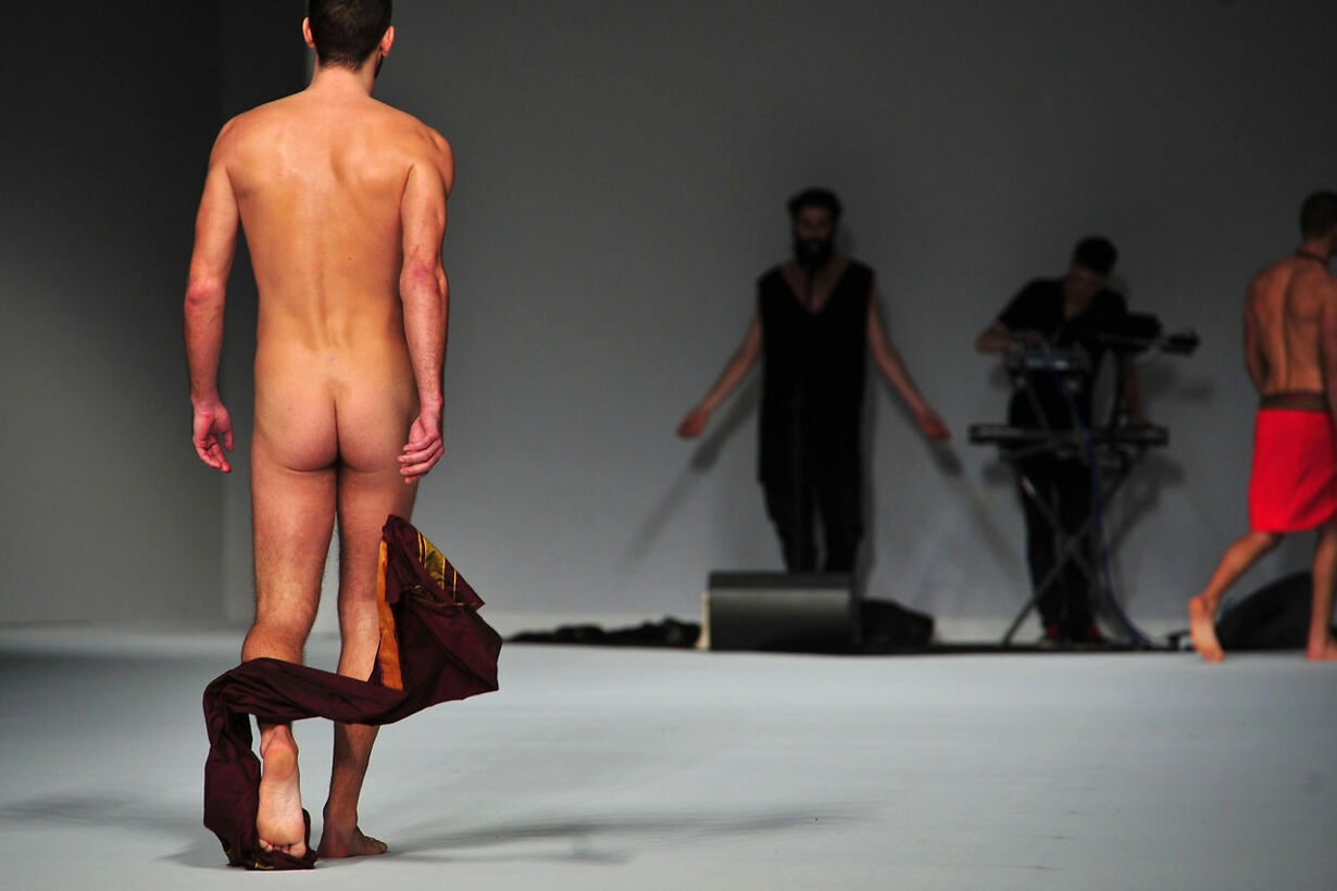 Fashion show of naked men