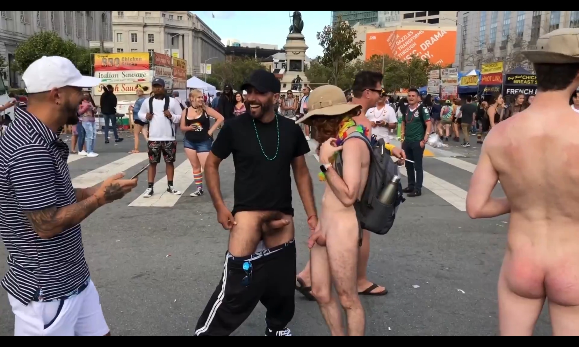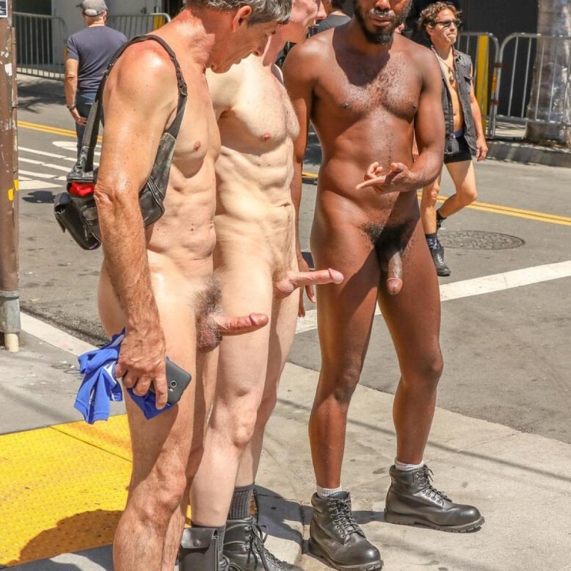 Naked guys on the streets of the city