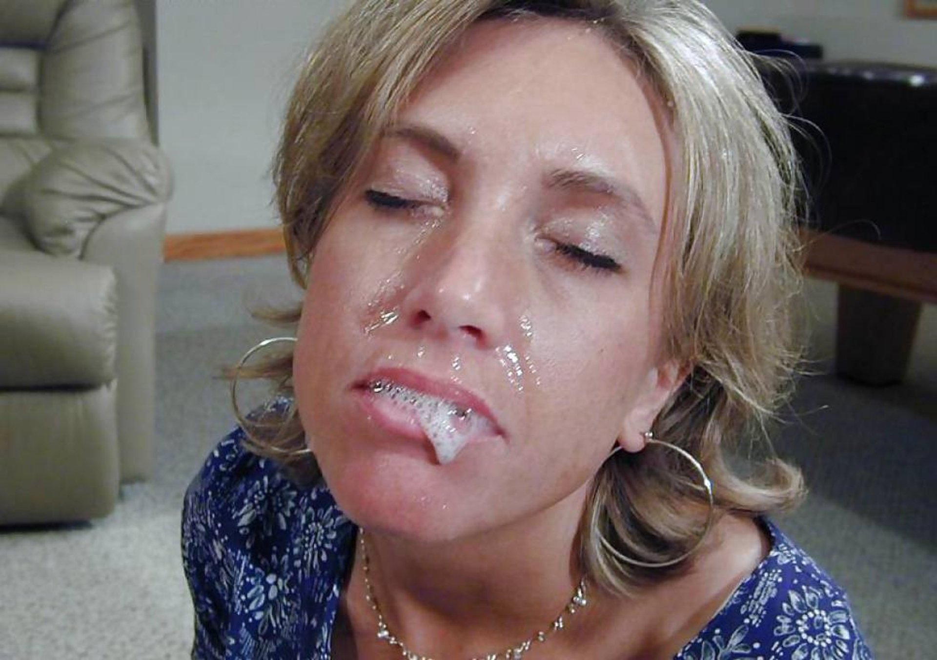 Bukkaka on a mature face