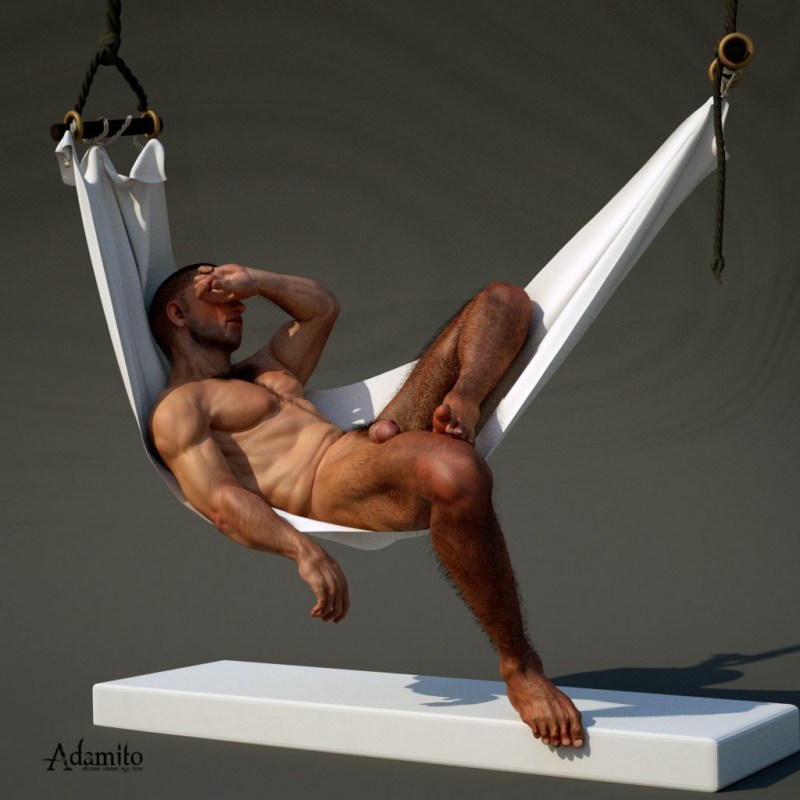 Naked man in a hammock