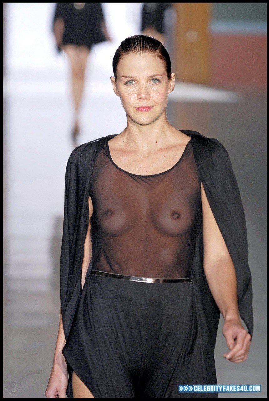 On the catwalk with naked boobs