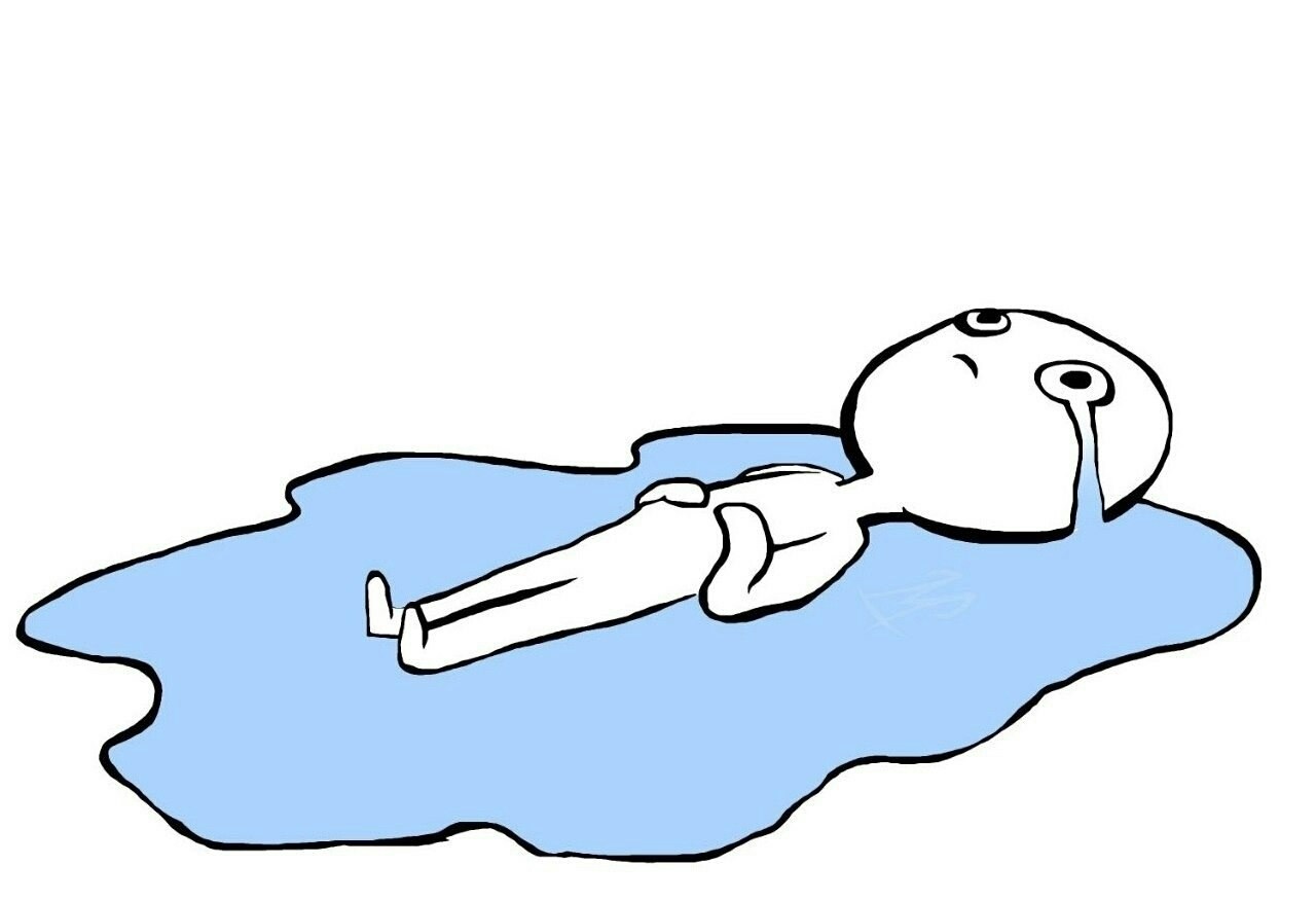 Lies in a puddle of tears